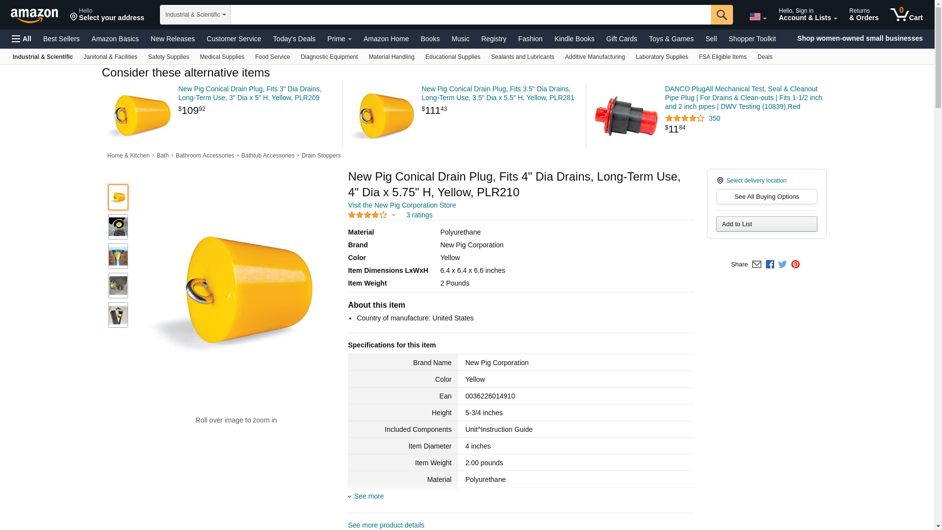New Pig PLR210 | Drain Plug Yellow | 30PW23 | Raptor Supplies Worldwide