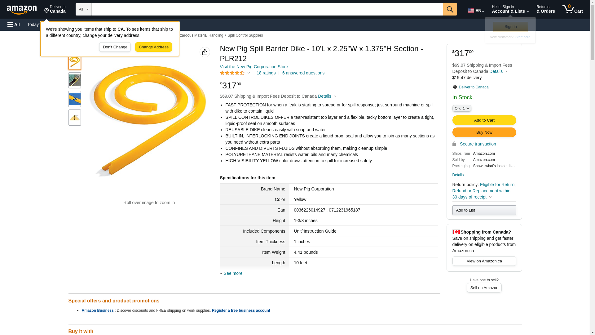 New Pig SpillBlocker Dike - Spill Control for Smooth Surface - 10' x 2.25" x 1.375" - Yellow - PLR212 (2-(Pack))