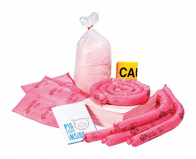 - Includes PIG HazMat socks to stop spreading spills; PIG HazMat pads and pillows to absorb; and PIG HazMat pulp to clean up residue on rough surfaces