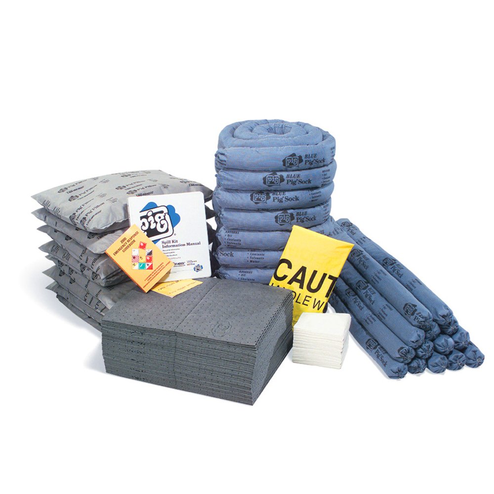 - Pig blue socks stop spreading spills; Pig mat and pillows absorb; wipers clean surfaces and hands