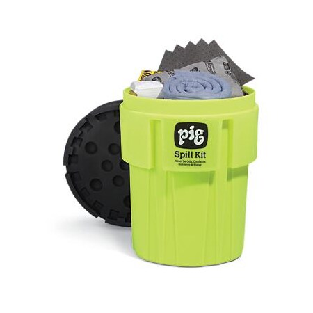 Pig Spill Kit in 95-Gallon High-Visibility Container | Absorbs Oils & Water | 60-Gal Absorbency | Hi-Viz Spill Kit | KIT262
