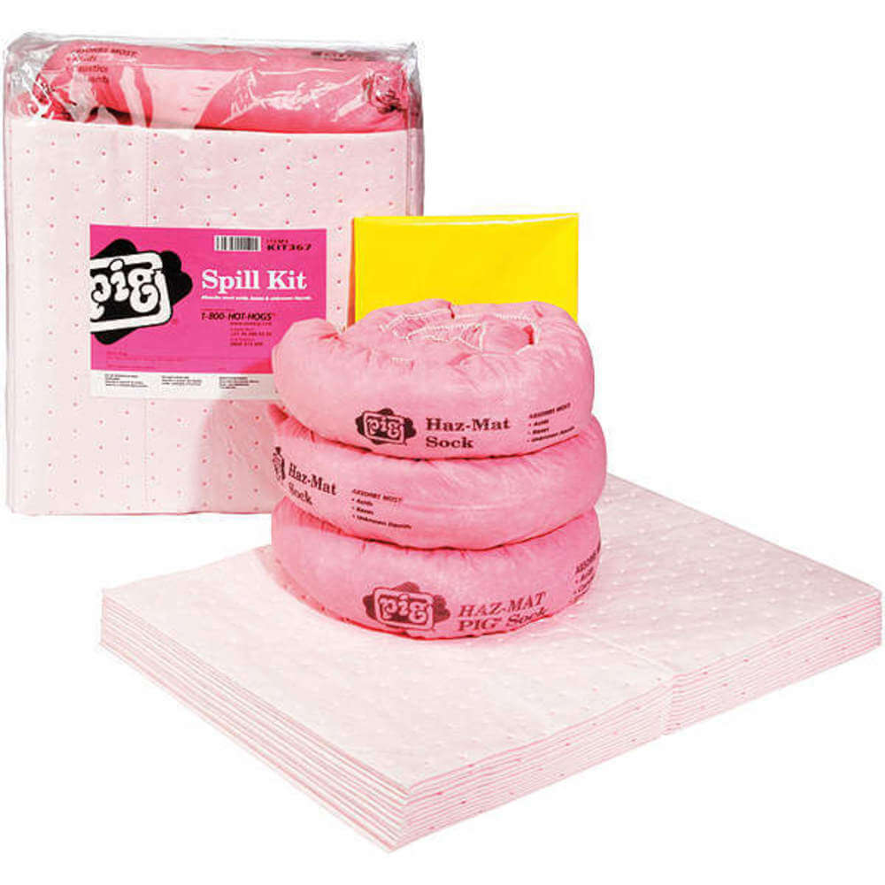 - KIT CONTAINS: 3 - ext. dia. 3" x 46" L PIG HazMat Chemical Absorbent Sock, 12 - 15" W x 20" L PIG HazMat Chemical Absorbent Mat Pad, 2 - 18" W x 30" H Polyethylene Disposal Bags in a Clear Vinyl Bag
