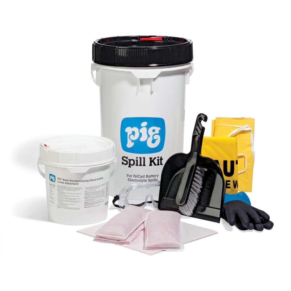 - All absorbents in this specially designed kit absorb and neutralize NiCad battery electrolyte spills