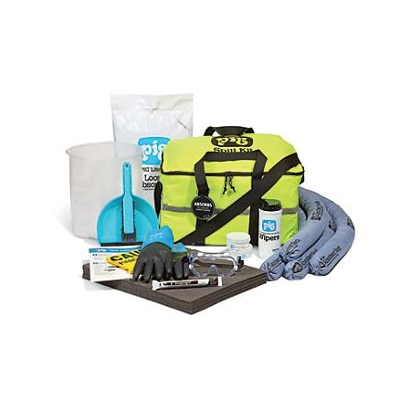 Features and Benefits Designed just for trucks! Packed with PIG® Absorbents and essential spill supplies for cleaning up oil, gas and other vehicle fluids Cube-shaped tote bag design fits in a mounted storage box or large external compartment of a truck or other vehicles Hi-viz yellow bag with reflective striping is easy to find; increases driver visibility and safety during spill response Durable fabric and rugged construction won't rip or tear; tough enough to refill and reuse Carrying straps and shoulder strap make it easy to pull bag from its storage space and take supplies to the spill Spill kit in cube-shaped bag fits your vehicle's large external compartments or a mounted storage box to keep you prepared for spills on the road. Kit Includes: (4) 3" x 48" PIG® Blue Absorbent Socks (25) 15" W x 20" L PIG® Absorbent Mat Pads (1) PIG® LITE-DRI® Loose Absorbent (1)  10" W x 12" L PIG® Premoistened Hand and Surface Wipers (2) 3.25" x 1.75" PIG® Plug-N-Seal® No-Freeze Patching Paste (1) Collapsible Container (5) 18" W x 30" H Polyethylene Disposal Bags (1) Dustpan/Broom (1) Economy Goggles (1) 13" Showa-Best Chem Master(TM) Neoprene Gloves (1) Apron (1) Lightstick (1) Instructions