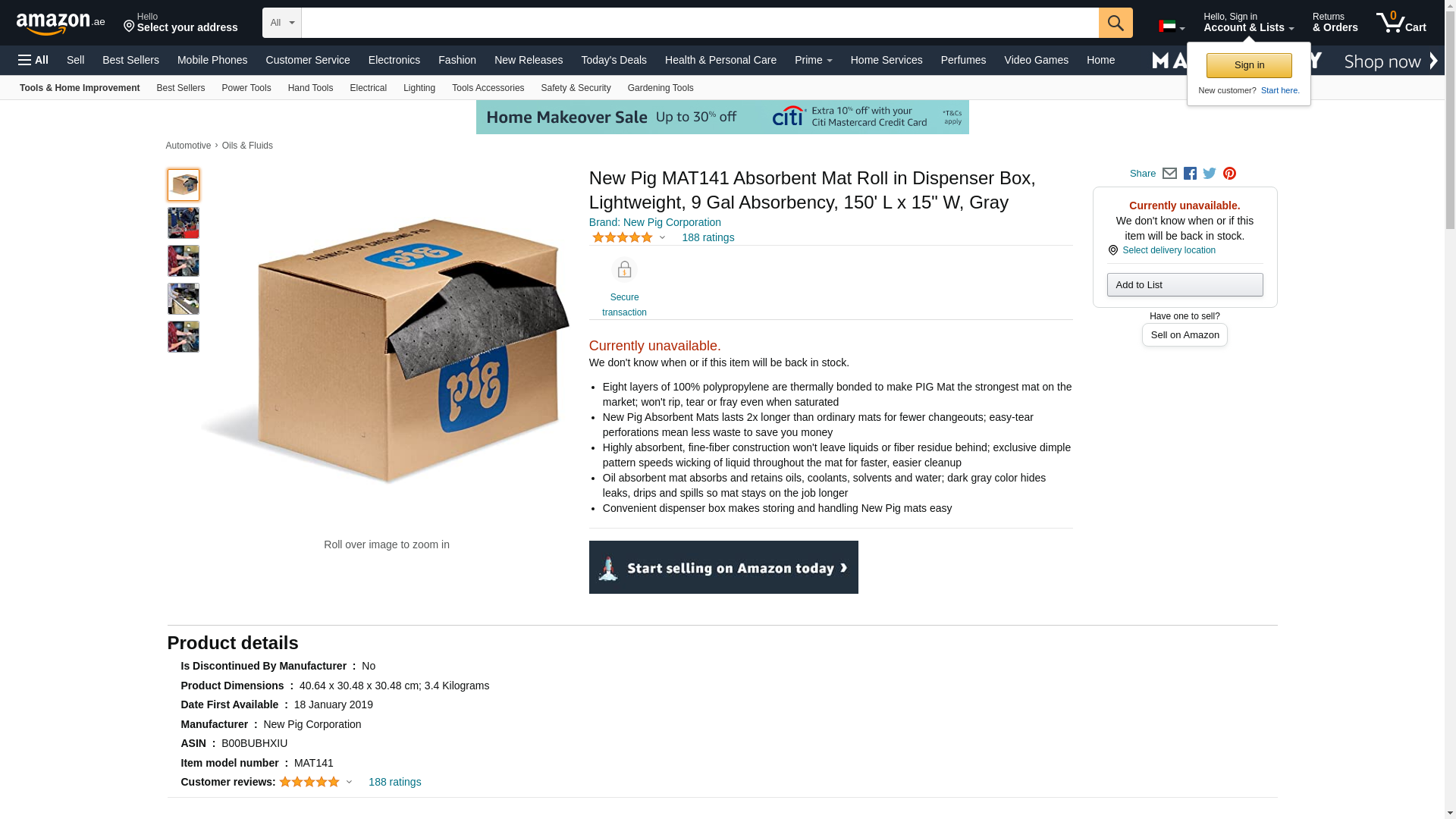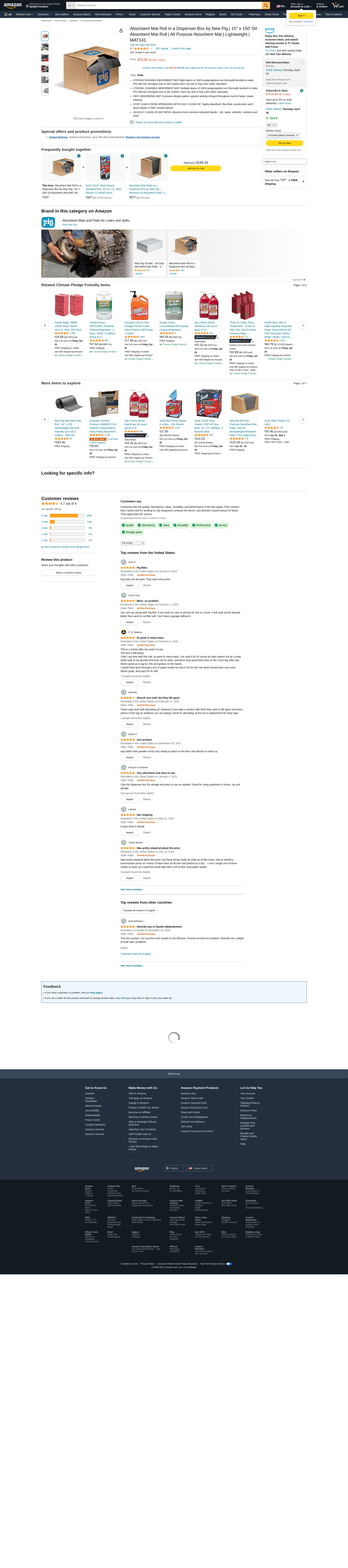Absorbent Mat Roll in a Dispenser Box by New Pig | 15" x 150' Oil Absorbent Mat Roll | All Purpose Absorbent Mat | Lightweight | MAT141
