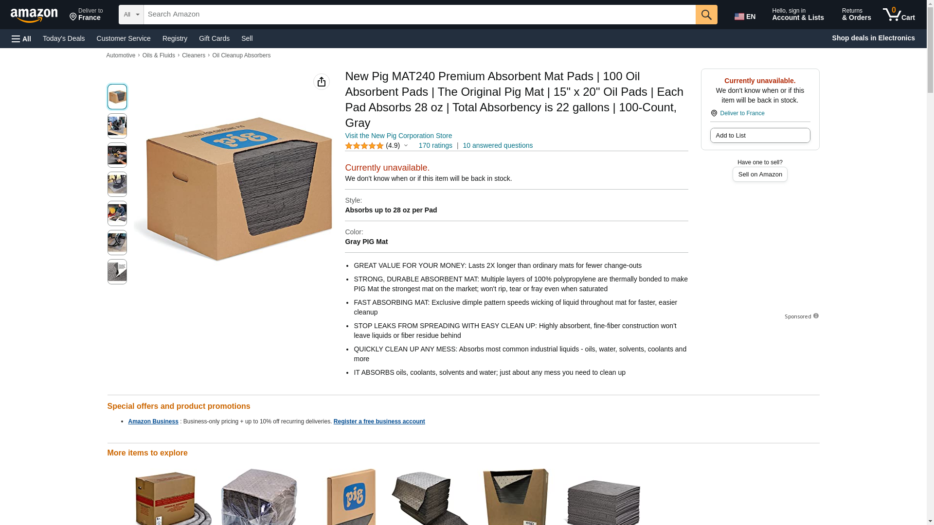 | Feature | "STRONG, DURABLE ABSORBENT MAT: Eight layers of 100% polypropylene are thermally bonded to make PIG Mat the strongest mat on the market; won't rip, tear or fray even when saturated" |
