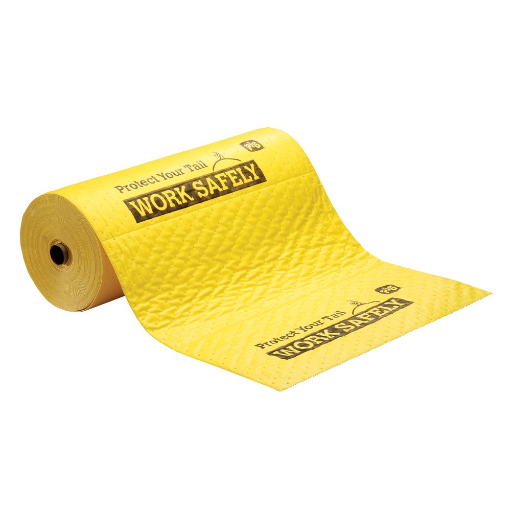 New Pig Chat Mat Yellow Absorbent Roll, Protect Your Tail. Work Safely.", 13 Gal Absorbency, 75' L x 24" W, MAT607-635