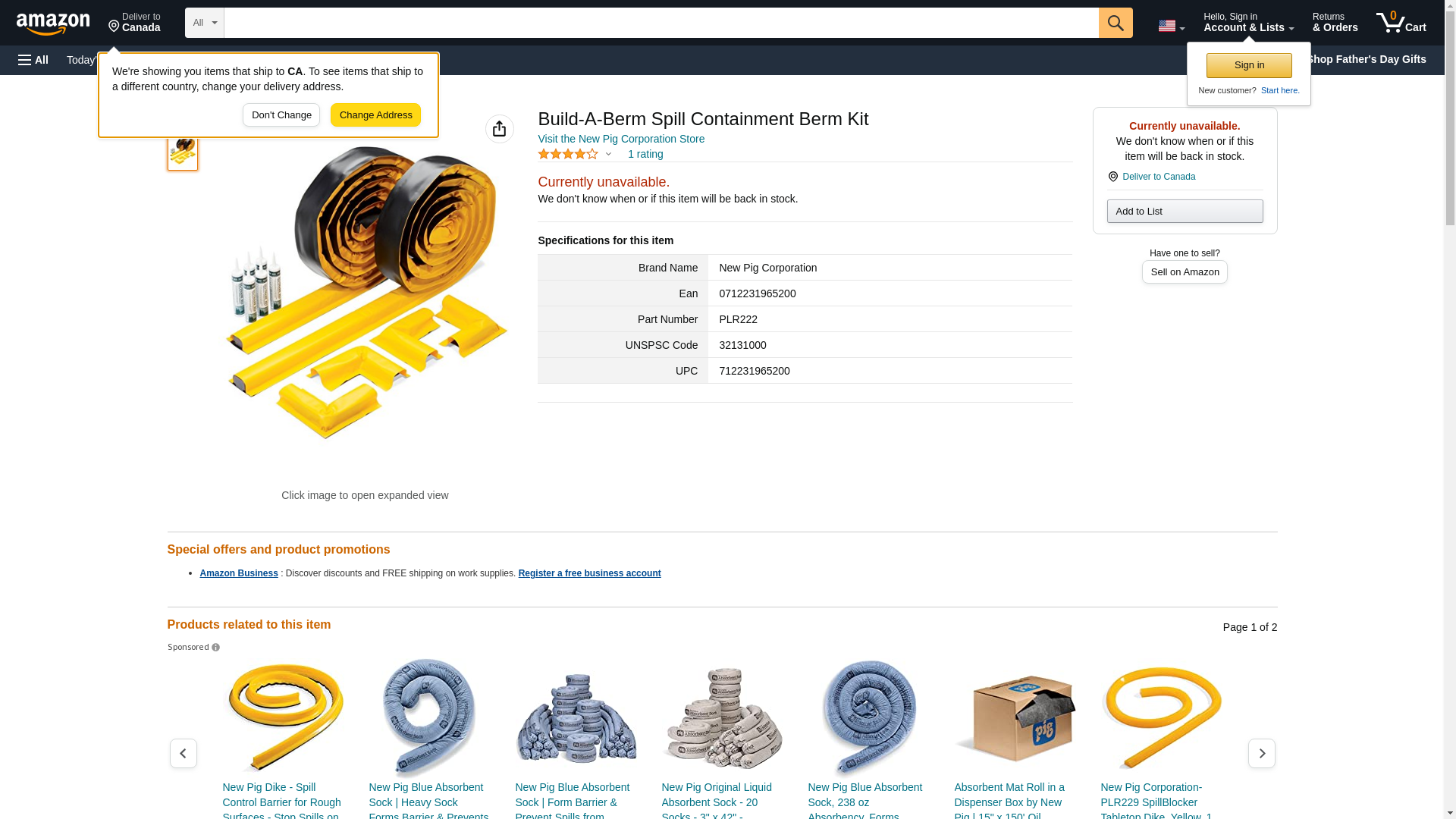 | Feature | <b>Price For:</b> Each <b>Item</b>: Spill Containment Berm Kit <b>Color</b>: yellow <b>Application</b>: Contain Leaks and Spills Around Your Machinery <b>Material</b>: Vinyl Foam, Polyurethane, Sili-Thane(TM) 803 Sealant <b>Includes</b>: (2) 5-1/2" W x 25 ft. L x 2" H PIG(R) Build-A-Berm(R) Barriers, (6) 10.3 fl. oz Sili-Thane(TM) 803 Sealant Tubes, 4" W x 10 ft. L 22 oz. Vinyl Seam Mender, (4) 5-1/2" W x 7.25" L x 2" H PIG(R) Build-A-Berm(R) Corners |