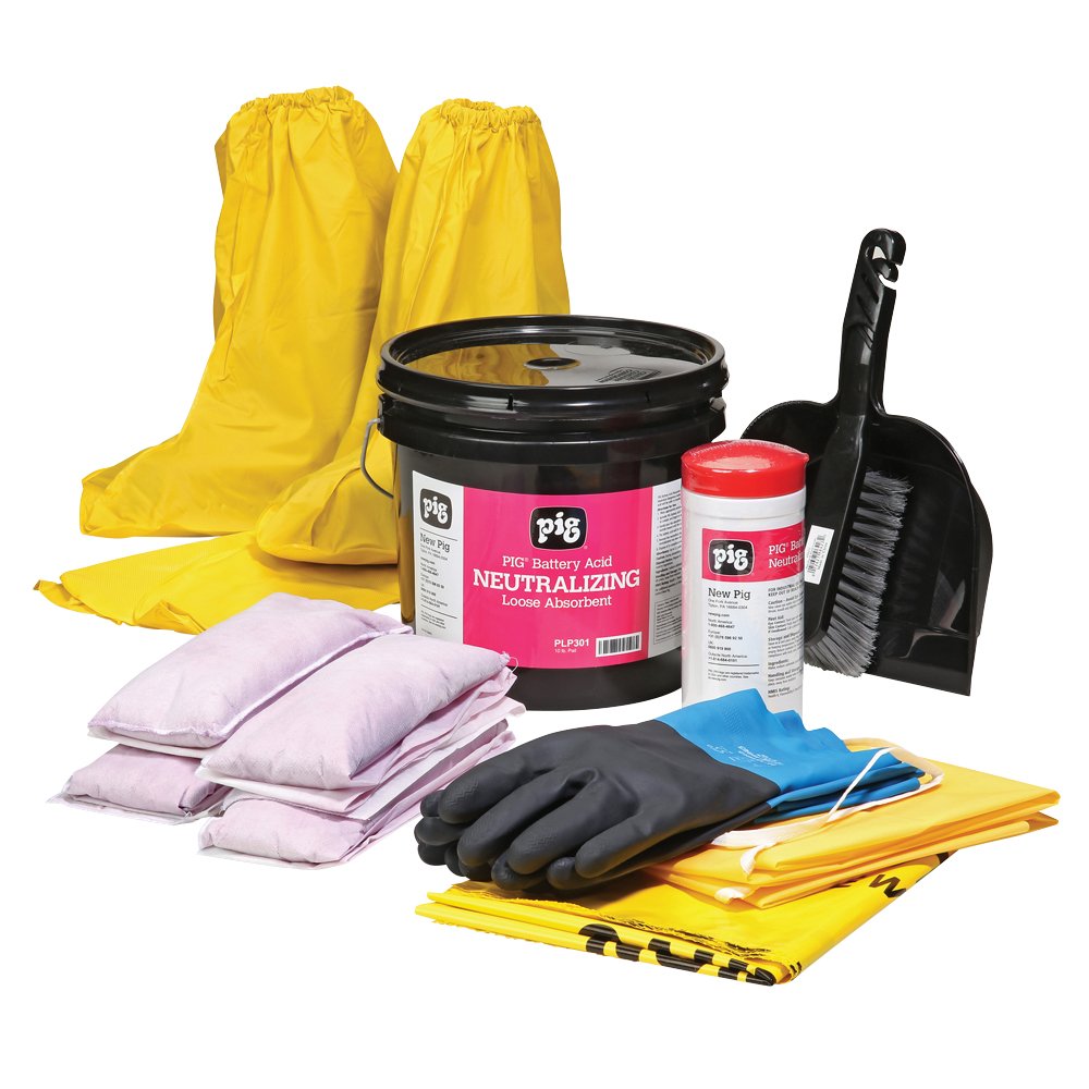 - Contains PIG Socks, loose absorbents and wipers formulated specifically for neutralizing and cleaning up battery acid