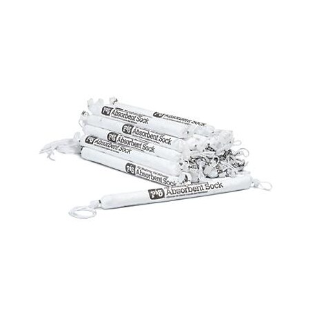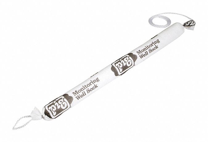 Small diameter sock that lets you know if there's oil in your monitoring well. Simply lower this floating sump skimmer into a monitoring well to absorb oils without taking in any water Polypropylene skin resists tearing; meets NFPA 99 standards for static decay Polypropylene loop can be attached to rope (not included) for easy deployment and retrieval Absorbs and retains oils and oil-based liquids - including lubricants and fuels - without absorbing a drop of water Bright white color makes absorbed oil easier to see; clearly shows saturation level Can be incinerated after use to reduce waste or for fuels blending Fluid Absorbed: Oil-Based Liquids - Not Water Color: White Dimensions: ext. dia. 1.5" x 18" L Absorbency: Up to 4 gal. per box Absorbency per: Up to 17 oz. per sock Configuration: Skimmer Filler: Polypropylene Skin/Outer Mesh: Skin - Polypropylene Sold as: 30 socks per box Weight: 6 lbs. # per Pallet: 30 Application: Storm Preparedness UNSPSC: 47131904