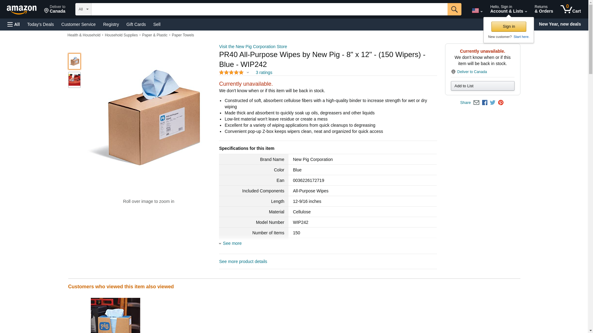 PR40 All-Purpose Wipes by New Pig - 8" x 12" - (150 Wipers) - Blue - WIP242
