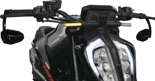 Plug-and-play LED front turn signals for 790 Duke riders is now available from New Rage Cycles. - Brightest LED turn signals in the market - Completely Plug & Play - Black textured finish for professional look - Proper flash speed; no additional modules required **If you order both front and rear aftermarket kits, you will need a resistor (Dual-Load Equalizer) to stabilize the flash. Ordering one or the other will not require a resistor.**