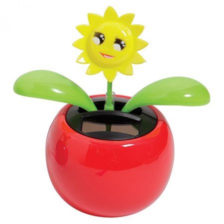 <ul> <li>Solar Powered</li> <li>No batteries</li> <li>Decorative pot</li> <li>Dance back and forth</li> </ul>