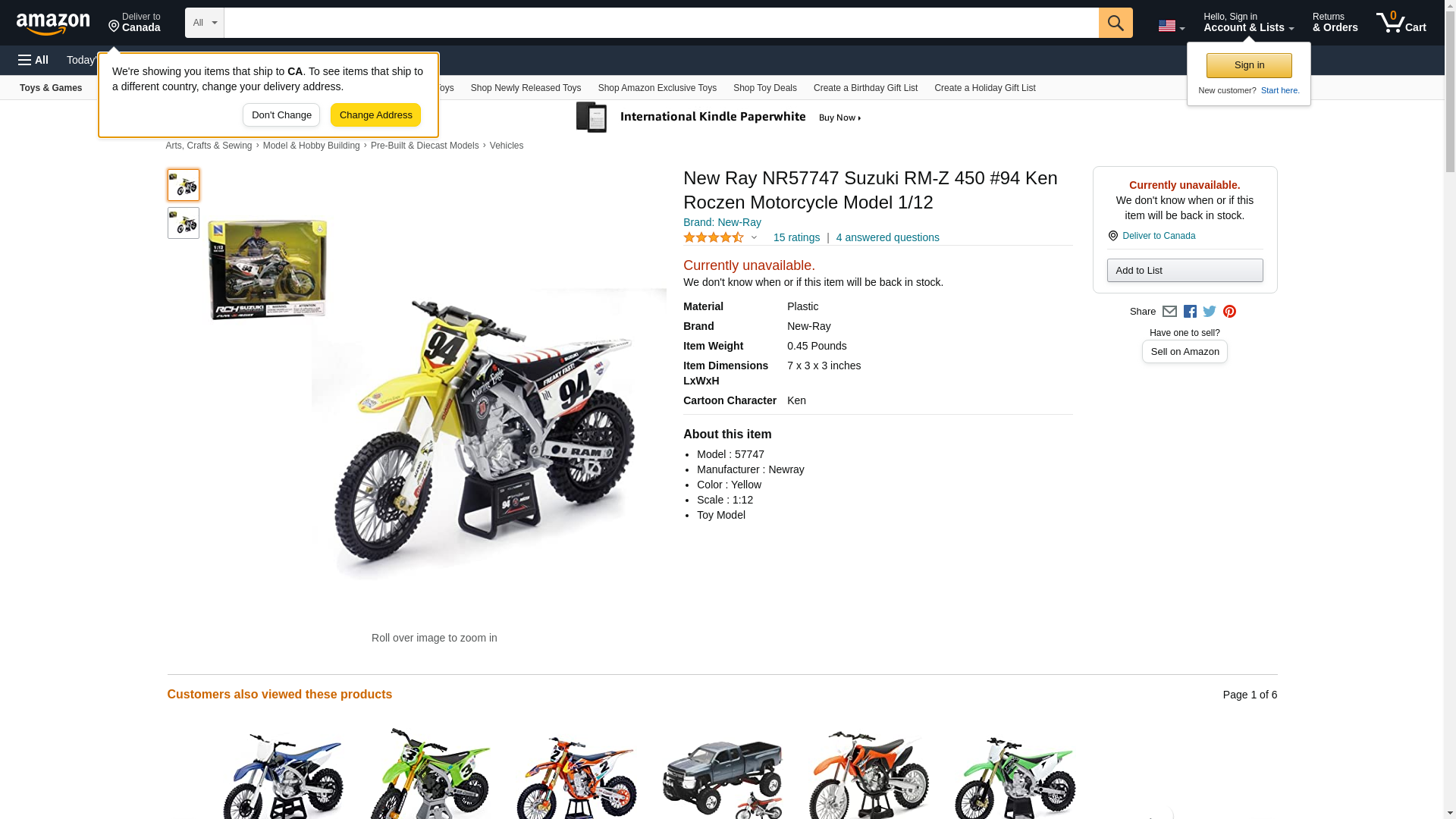 Suzuki RM-Z 450 #94 Ken Roczen Motorcycle Model 1/12 by New Ray 57747