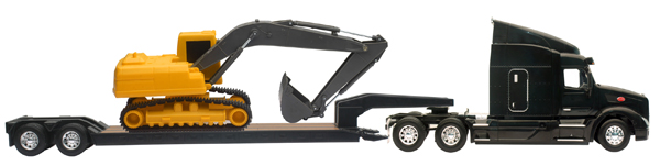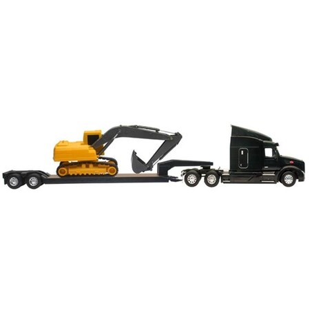 New-Ray NEW02106 Peterbilt 579 - Lowboy Trailer Hauling an Model Excavator