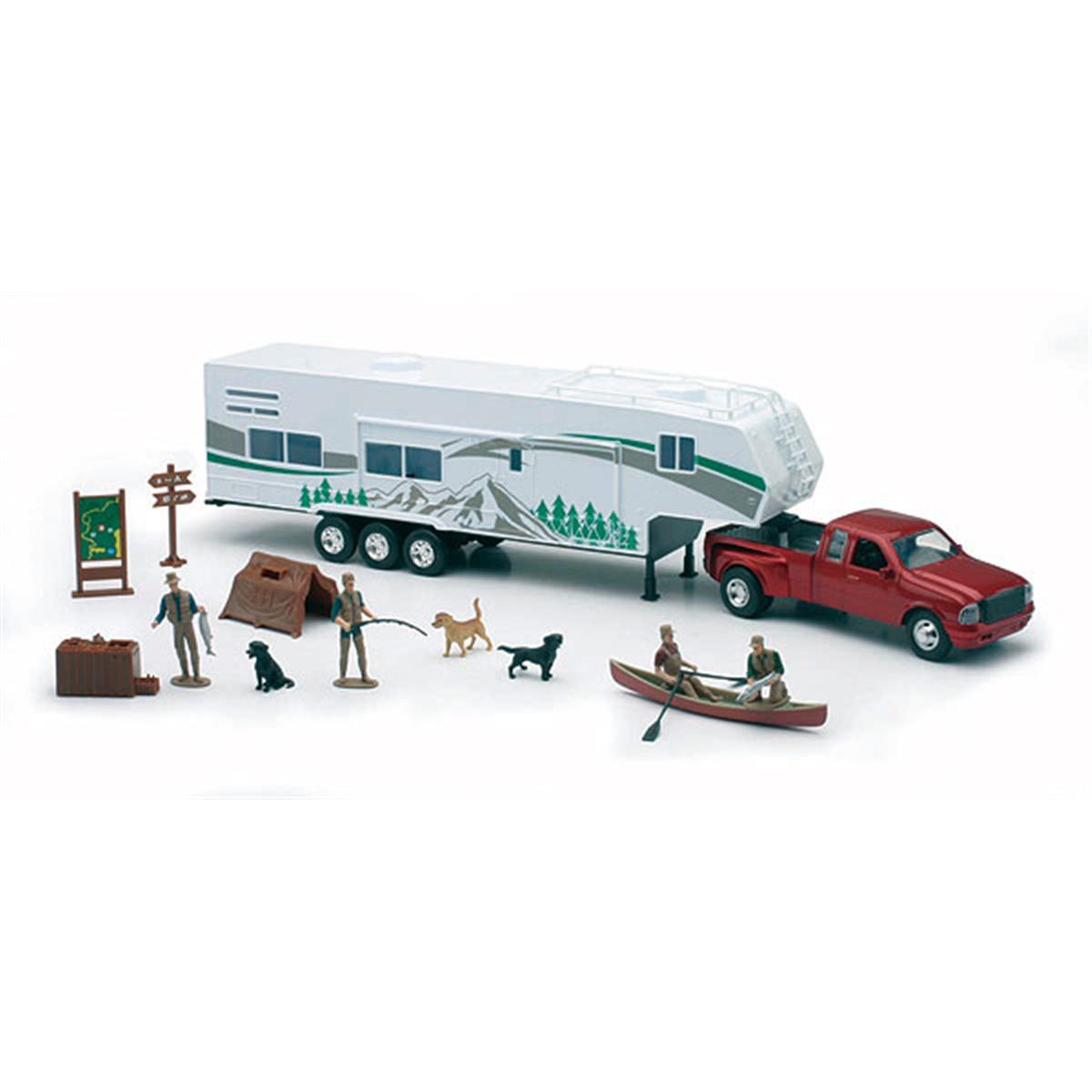 New-Ray NEWSS-10706 Ford Pickup Truck with Fifth Wheel Camper & Camping Accesories