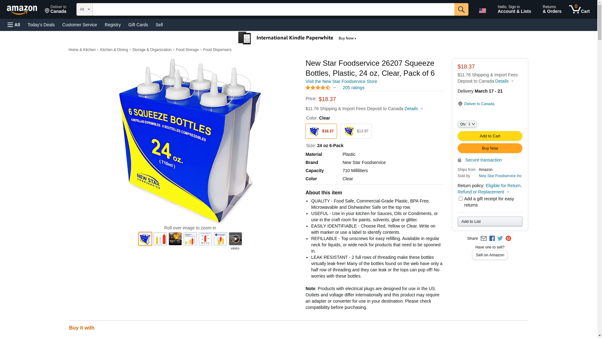 New Star Foodservice 26375 Squeeze Bottles, Plastic, 24 oz, Red, Pack of 6