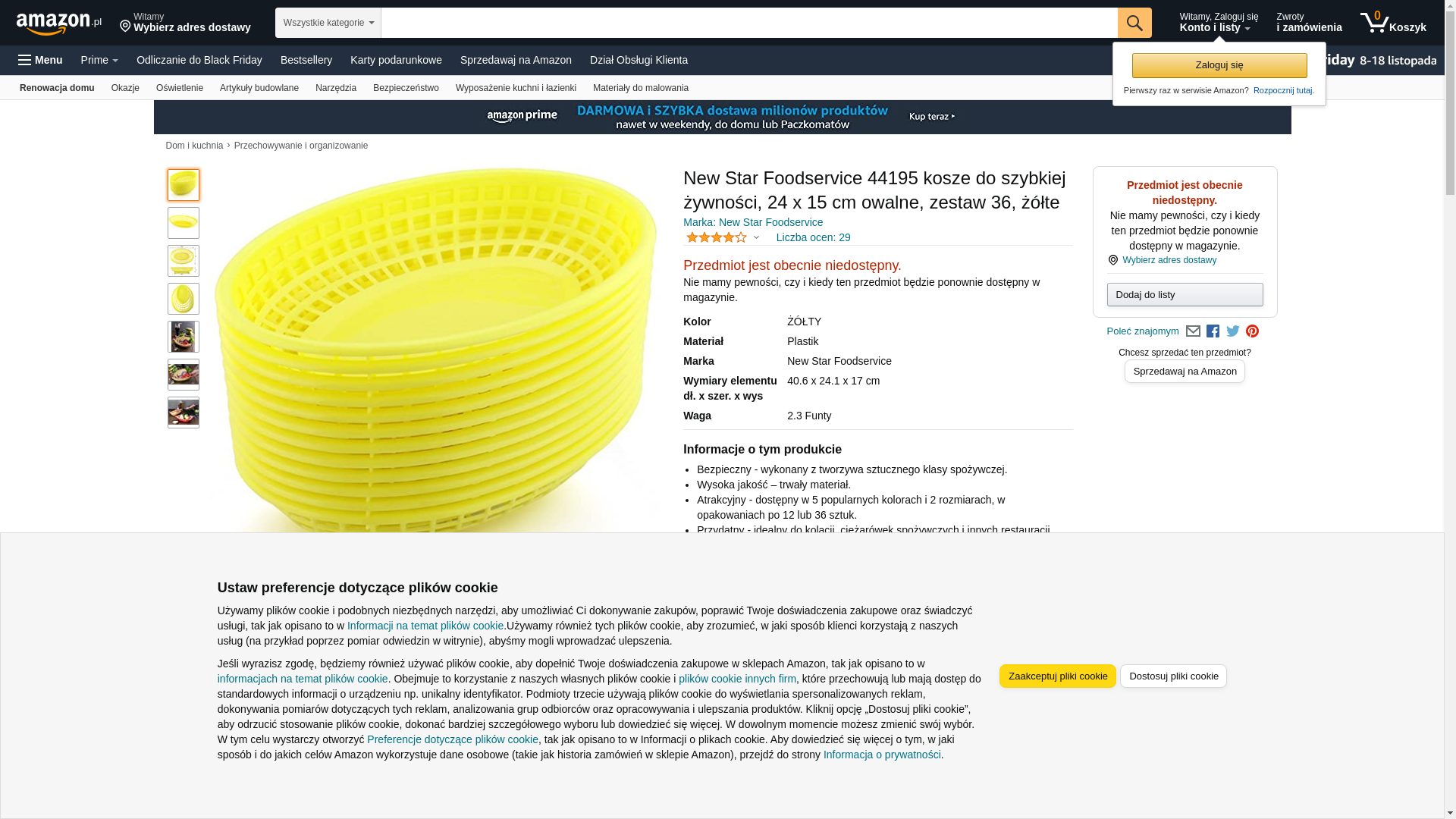 New Star Foodservice 44195 Fast Food Baskets, 9 1/4 x 6 Inch Oval, Set of 36, Yellow
