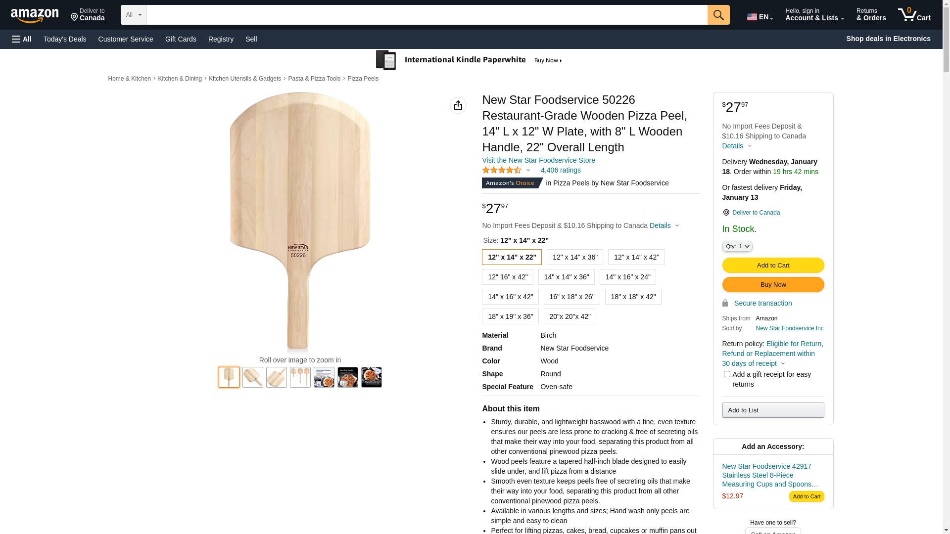 New Star Foodservice 50226 Restaurant-Grade Wooden Pizza Peel, 14" L x 12" W Plate, with 8" L Wooden Handle, 22" Overall Length