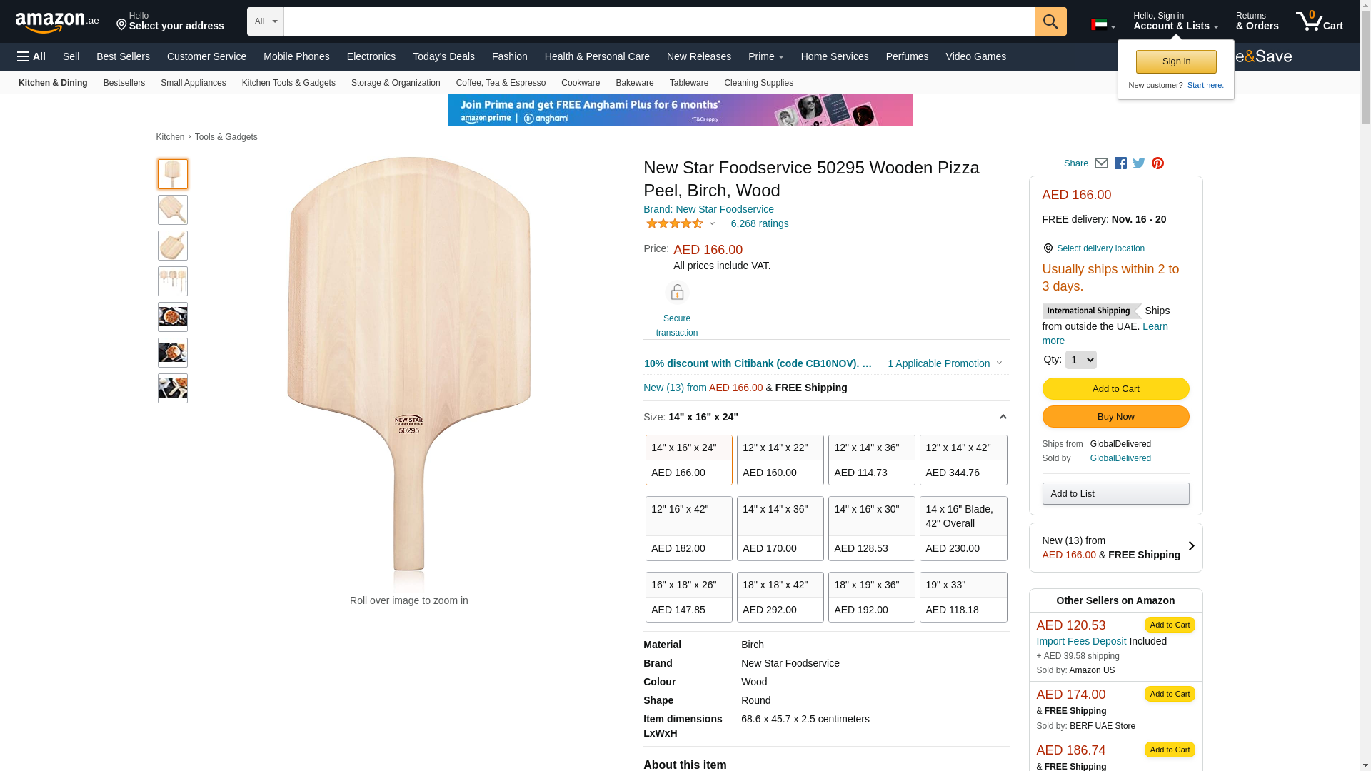 New Star Foodservice 50295 Restaurant-Grade Wooden Pizza Peel, 16" L x 14" W Plate, with 10" L Wooden Handle, 24" Overall Length