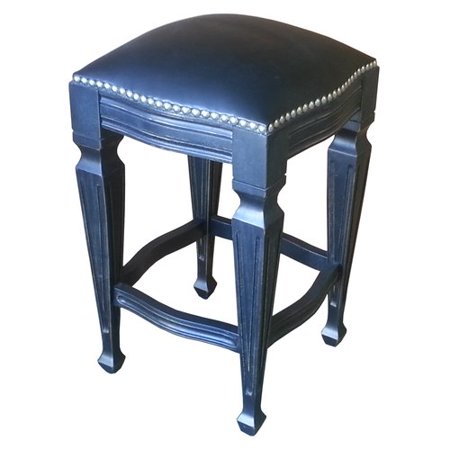NTA1236 <br /> <b>Features</b> <br /> <ul> <li>Zorro collection</li> <li>Material: Wood</li> <li>Seat material: Hand tooled leather</li> <li>Painstakingly handmade</li> <li>Saddle leather is carved with a hammer and nail</li> <li>Hand tooled by talented artisans</li> <li>Frame Material: Solid Wood</li> <li>Distressed: Yes</li> <li>Seat Material: Leather</li> <li>Style (Old): Traditional</li> <li>Seat Style: Square</li> <li>Seat Color: Blue</li> <li>Nailhead Trim: Yes</li> <li>Leg/Base Type: 4 legs</li> <li>Seat Back Type: Backless</li> </ul> <br /> <b>Dimensions</b> <br /> <ul> <li>Overall Height - Top to Bottom: 30"</li> <li>Overall Width - Side to Side: 18"</li> <li>Overall Depth - Front to Back: 18"</li> <li>Seat Height - Floor to Seat: 30"</li> </ul>