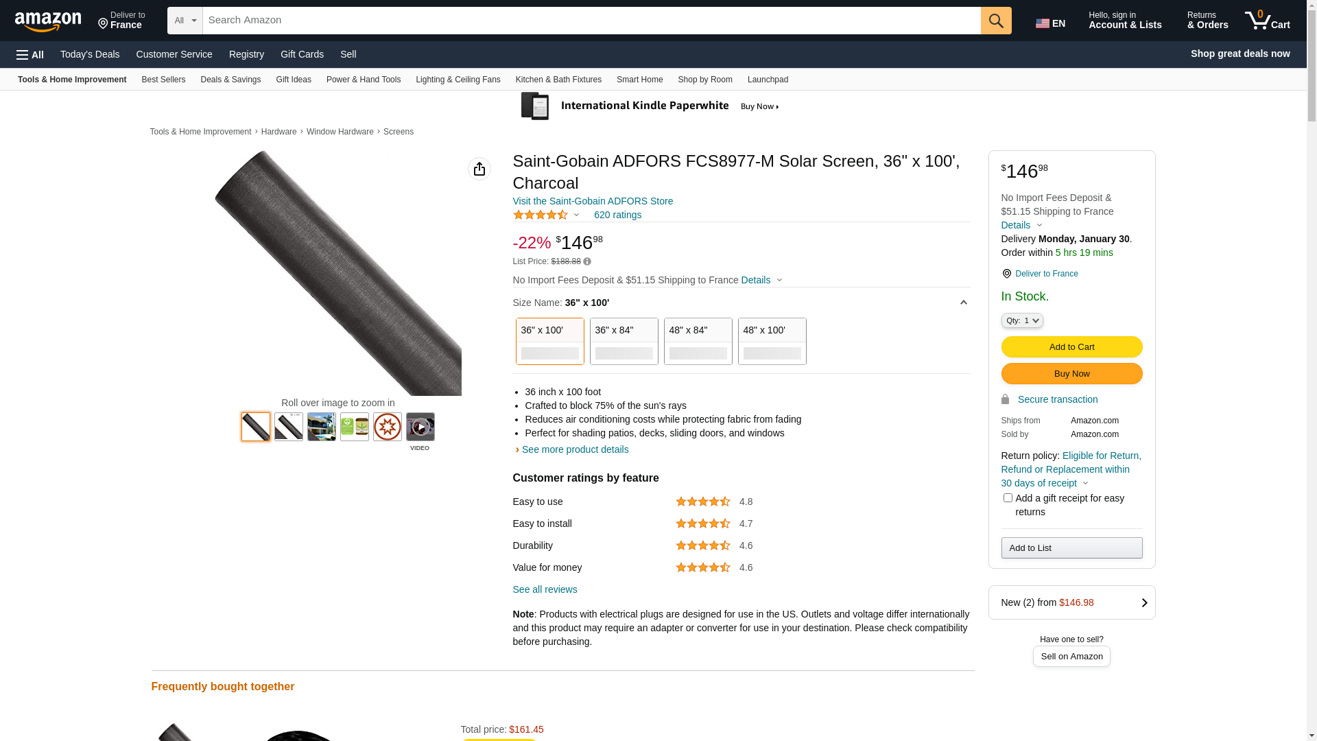 New York Wire FCS8977-M | Screen Fiberglass 36 Inch Width 100ft L | 36Y945 | Raptor Supplies Worldwide
