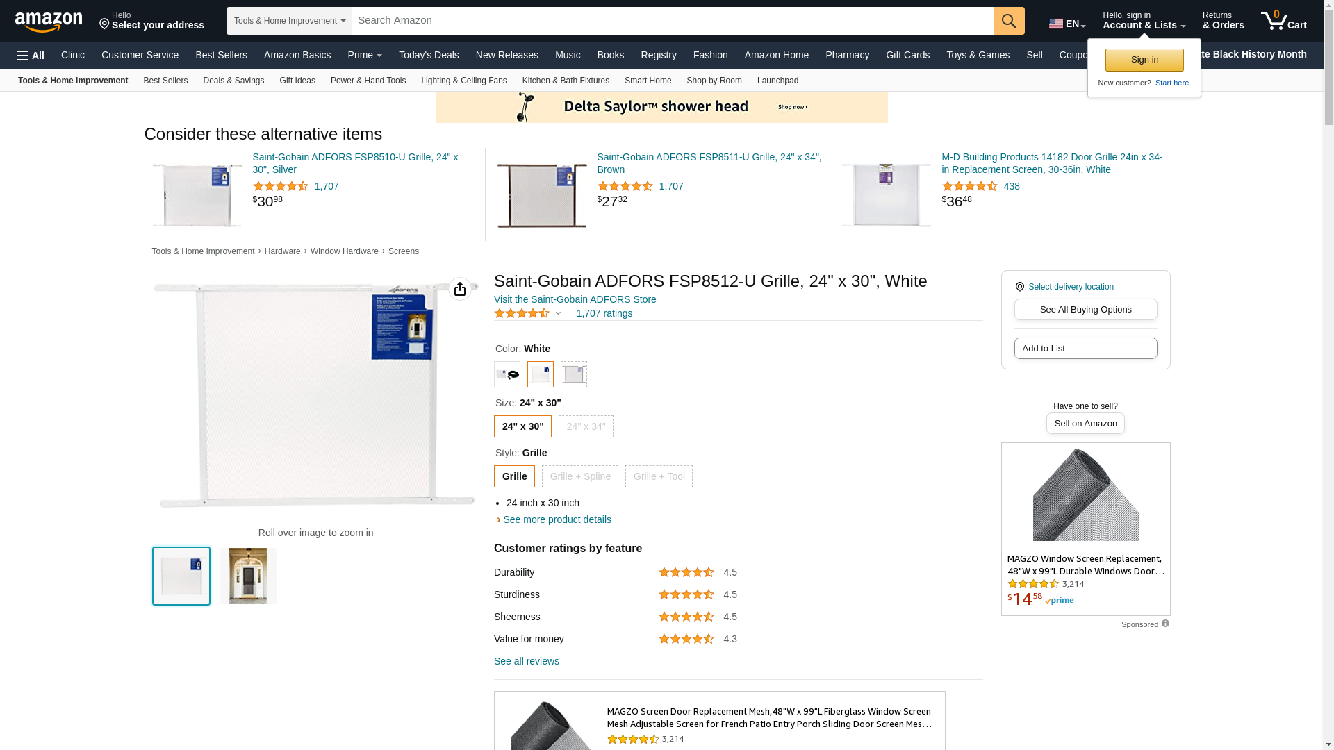 | Feature | Price For: Each Width: 24" Length: 36" Item: Screen Door Grille Country of Origin (subject to change): United States |