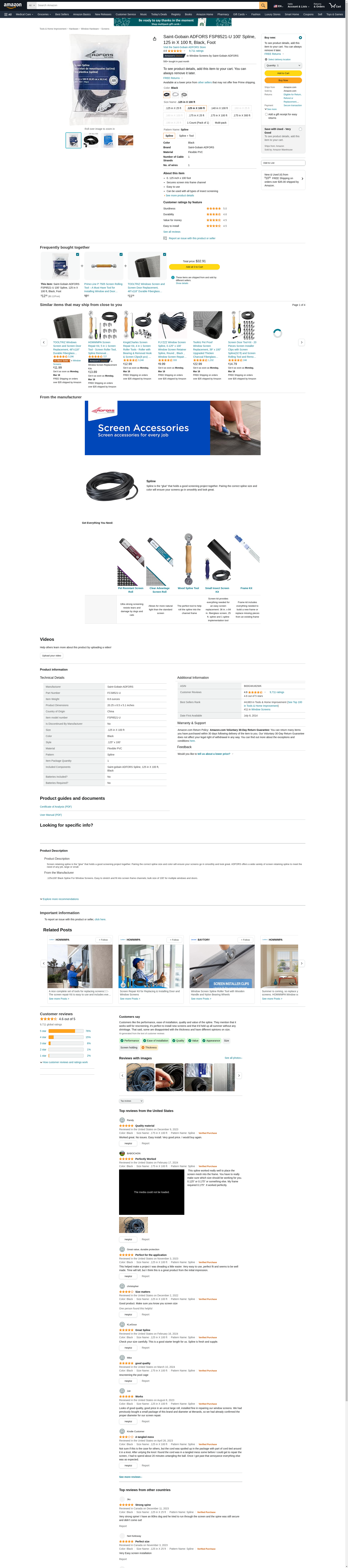 ADFORS Spline, .125" x 100', Black