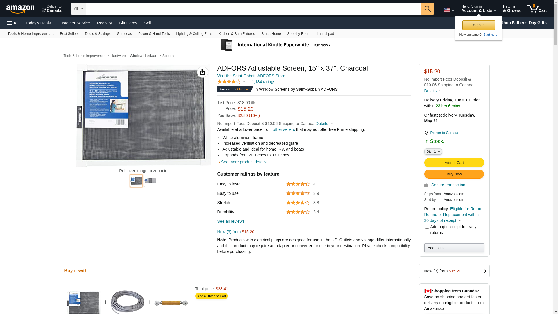 Adjustable window screens are ideal for use in your home, RV, cabin, boat or mobile home. Featuring fiberglass screen with a durable aluminum frame, it can expand from 20 in to 37 in wide to create ventilation in a variety of window sizes.; ; Brand Name: Saint-Gobain ADFORS Minimum Width: 20 Maximum Width: 37 in. W in. Screen Material: Fiberglass Product Type: Adjustable Window Screen Color: Gray Frame Material: Aluminum Height: 15 in. Adjustable: Yes Number in Package: 1 pk Packaging Type: Sleeve