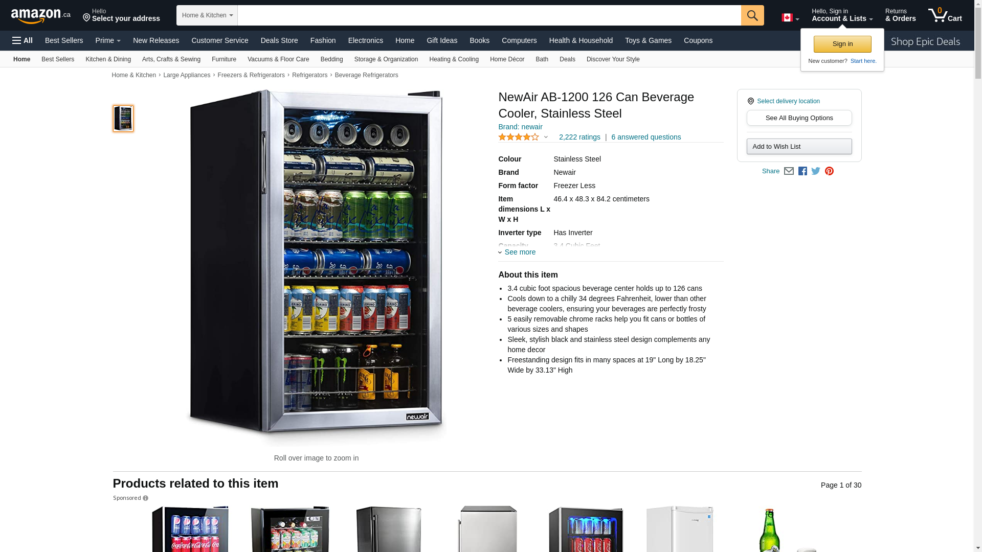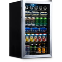 The NewAir AB-1200 can beverage cooler lets you store your favorite canned drinks at the perfect temperature with its 7 temperature settings. Compact and stylish, this sleek black and stainless steel beverage cooler is great for small spaces like RVs and boat, or for supplementary drink storage in your kitchen. It holds up to 21 six packs for a total of 126 of your favorite beer or soda. You'll keep everyone happy by having plenty of their favorites chilled to perfection. With 7 thermostat settings and temperatures that range between 34 and 64?F, the NewAir AB-stainless steel beverage cooler makes sure your drinks are always at their most refreshing best. Coming in at under 3 ft., the NewAir AB-1200 stainless steel beverage cooler goes wherever you have need of extra drinks. Its 5 slide-out chrome and racks and interior LED light make easy to arrange your beer and soda for easy access. Access your beverages quickly and easily. With sliding shelves and plenty of storage managing your soda or beer collection is a cinch.