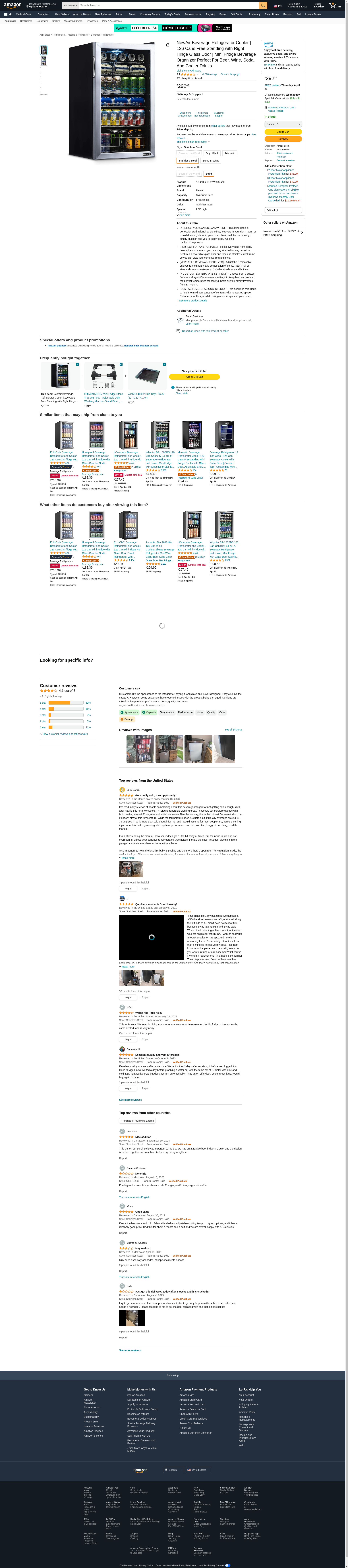 NewAir Beverage Refrigerator Cooler | 126 Cans Free Standing with Right Hinge Glass Door | Mini Fridge Beverage Organizer Perfect For Beer, Wine, Soda, And Cooler Drinks