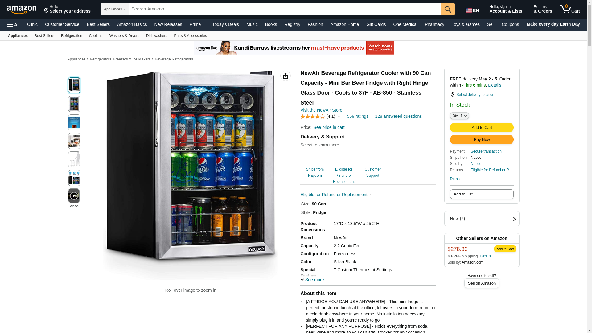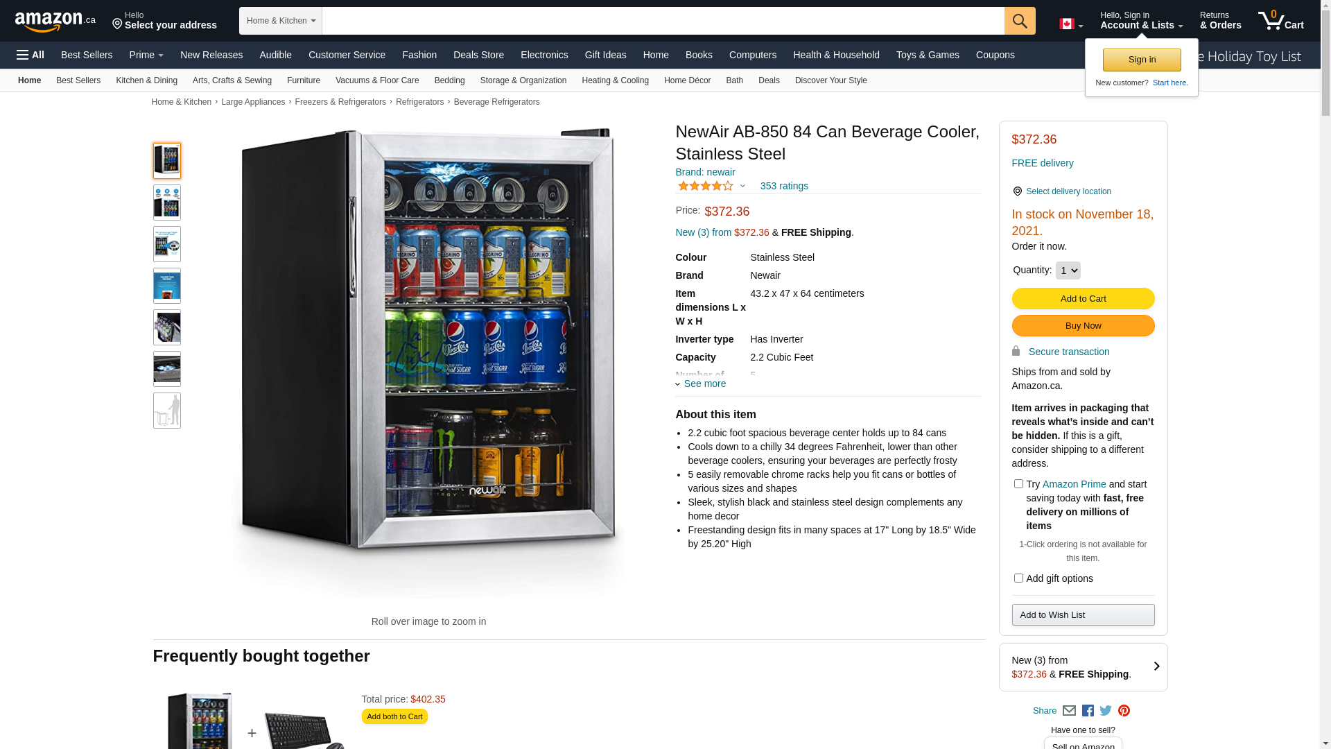 Keep plenty of your favorite canned drinks on hand and icy cold with the NewAir AB-850 beverage cooler. This compact unit fits neatly by your home bar, in your rec room, dorm rooms, or any place you need a ready supply of beer or soda. Holds 84 Cans The NewAir AB-850 beverage cooler refrigerator holds up to 84 standard cans of beer or soda. That's up to 14 6-packs of your favorite drinks. Adjustable Thermostat The NewAir AB-850 can beverage cooler has an easy-to-use thermostat with 7 settings and a cooling range of 64 to 34?F. Just turn the dial to select your perfect level of chill. Organize Your Favorite Drinks With 3 slide-out chrome racks, the NewAir AB-850 soda and beer cooler makes it easy to arrange your drink collection for easy access. An interior LED light helps you easily find what you're looking for. Sliding Shelves The NewAir AB-850 can cooler features easy to use manual controls and sliding shelves for accessibility. This unit makes stocking and selecting beverages a cinch.