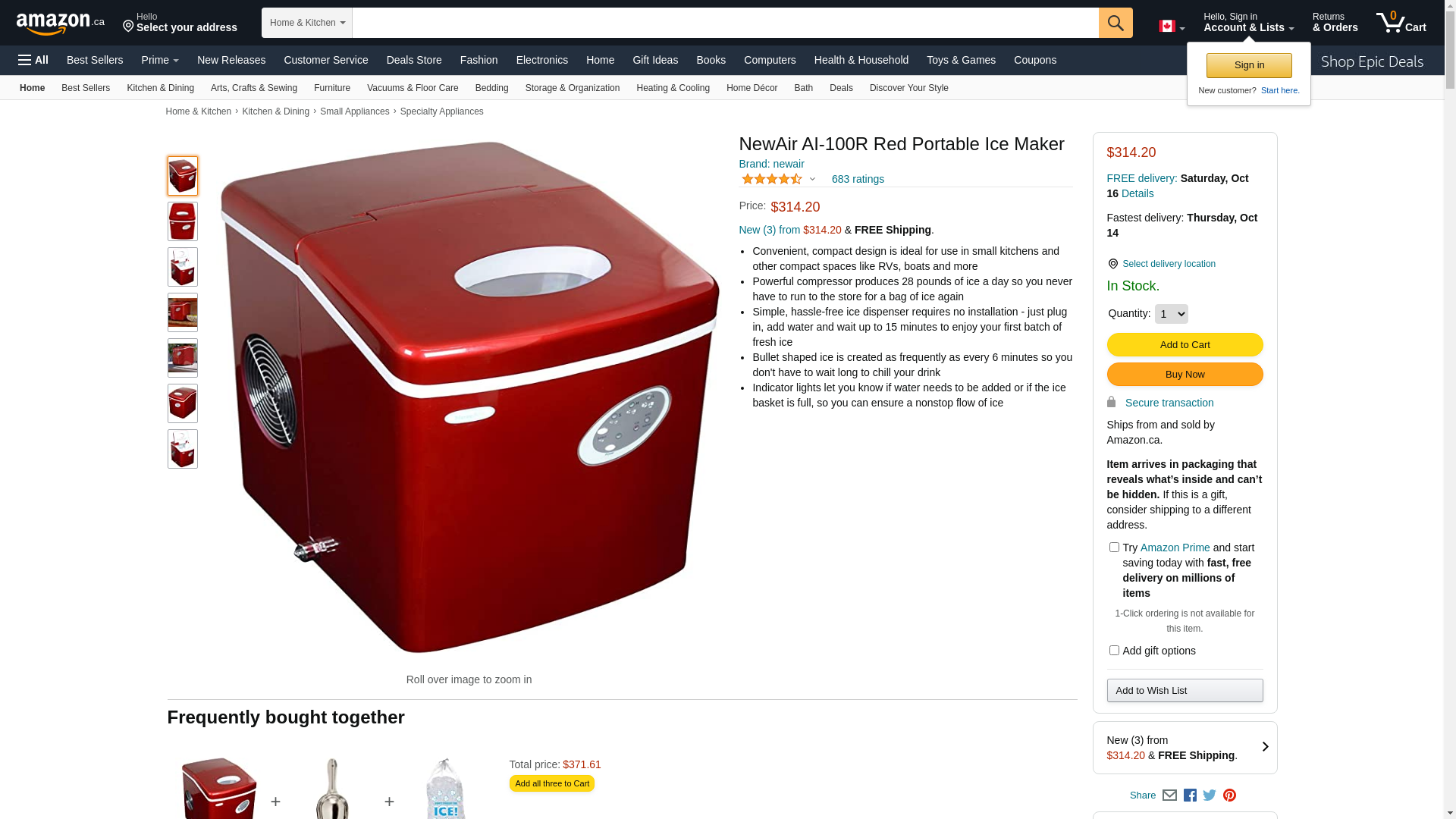 NewAir AI-100R Stainless Steel Portable Ice Maker Enjoy the benefits of fresh homemade ice anytime with the NewAir AI-100R portable ice maker. This easy to use ice machine is perfect for any setting. Whether you're relaxing at home or having a party, you'll love this ice maker. Makes Lots of Ice Never buy a bag of ice again and make enough ice for any occasion. The NewAir AI-100R portable ice maker makes 28 lbs. of ice per day, so it's guaranteed to keep you well-supplied with all the ice you need. Quick Cycle Time Enjoy fresh ice in minutes with the NewAir AI-100R portable ice maker. This unit makes up to 9 pieces of ice in as little as 15 minutes, so when you need ice at a moment?s notice you can have it. Needs More Water Indicator the NewAir AI-100R portable ice maker take the guesswork out filling the water reservoir. The empty reservoir indicator lets you know when it needs additional water to make ice. Easy to Use the sleek NewAir AI-100R portable ice maker features a side-mounted drain and removable ice bin to empty any unused water at the end of the day. Push button controls light up as selected, making it easy to select an ice size. Compact and Portable this ice maker is made for easy portability. It's compact to fit on virtually any counter and provides ice so quickly it can be set up and used at a moment?s notice. All you need is standard outlet. Plug n play operation requires only 115-Volt outlet, making it easy to take anywhere and use for any event.