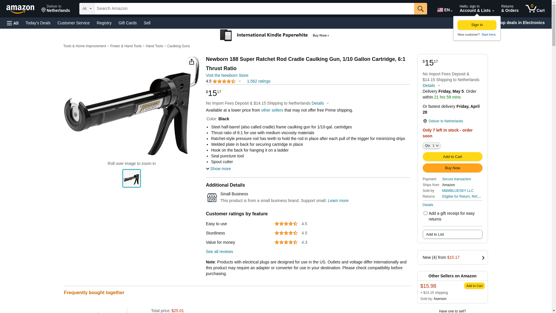 | Feature | The Newborn 188 Super Ratchet Rod Cradle caulking gun has a steel half-barrel frame that fits 1/10-gal. cartridges |