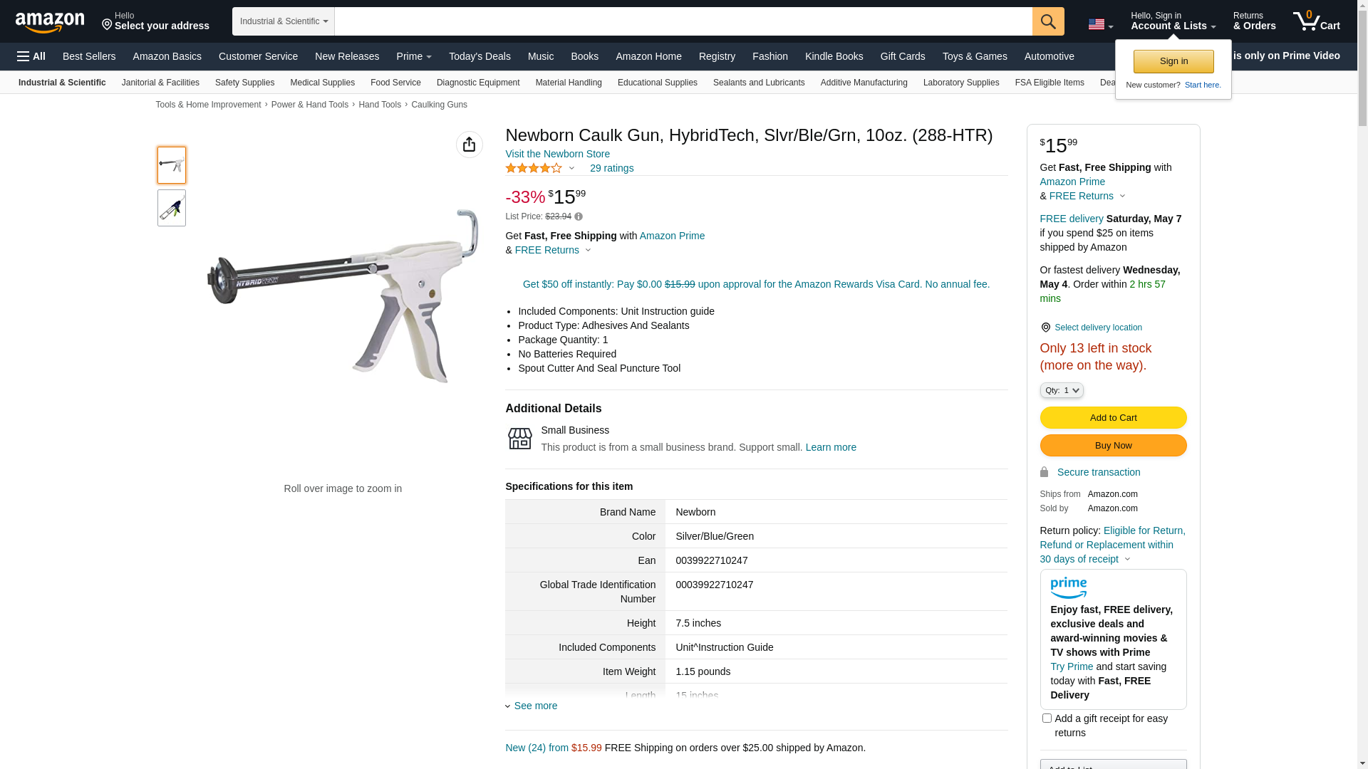Newborn Caulk Gun, HybridTech, Slvr/Ble/Grn, 10oz. (288-HTR)