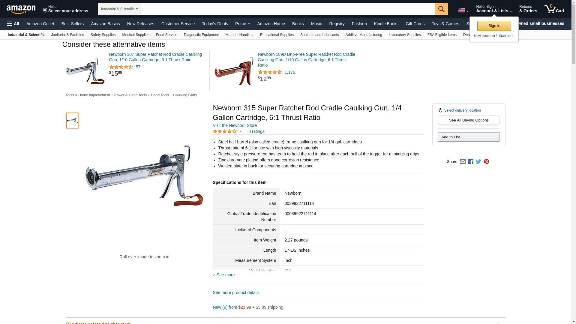Newborn 315 Super Ratchet Rod Cradle Caulking Gun, 1/4 Gallon Cartridge, 6:1 Thrust Ratio