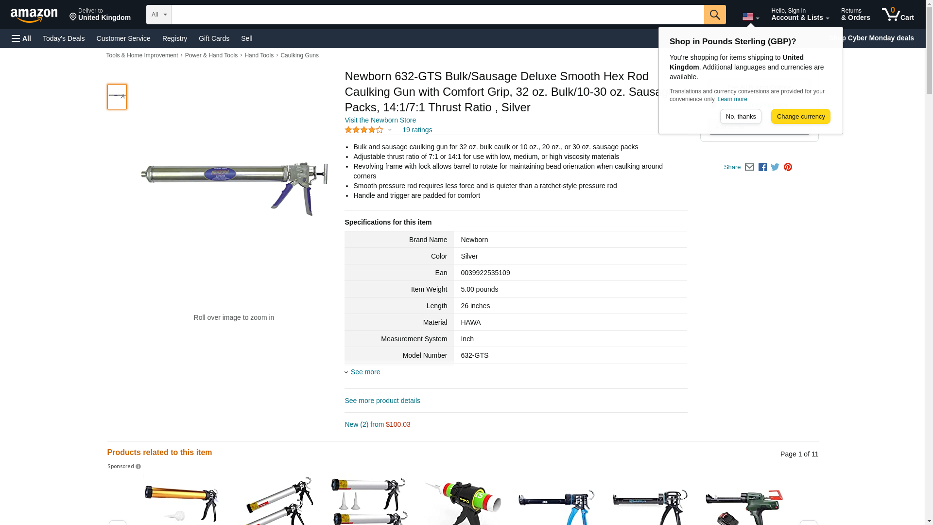 Newborn 632-GTS Bulk/Sausage Deluxe Smooth Hex Rod Caulking Gun with Comfort Grip, 32 oz. Bulk/10-30 oz. Sausage Packs, 14:1/7:1 Thrust Ratio , Silver