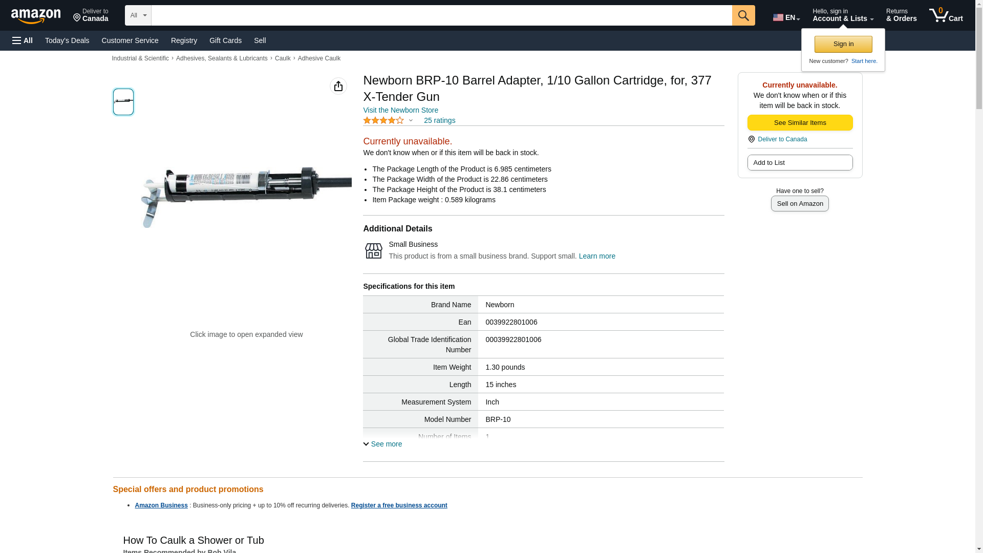 Newborn BRP-10 Barrel Adapter, 1/10 Gallon Cartridge, for, 377 X-Tender Gun