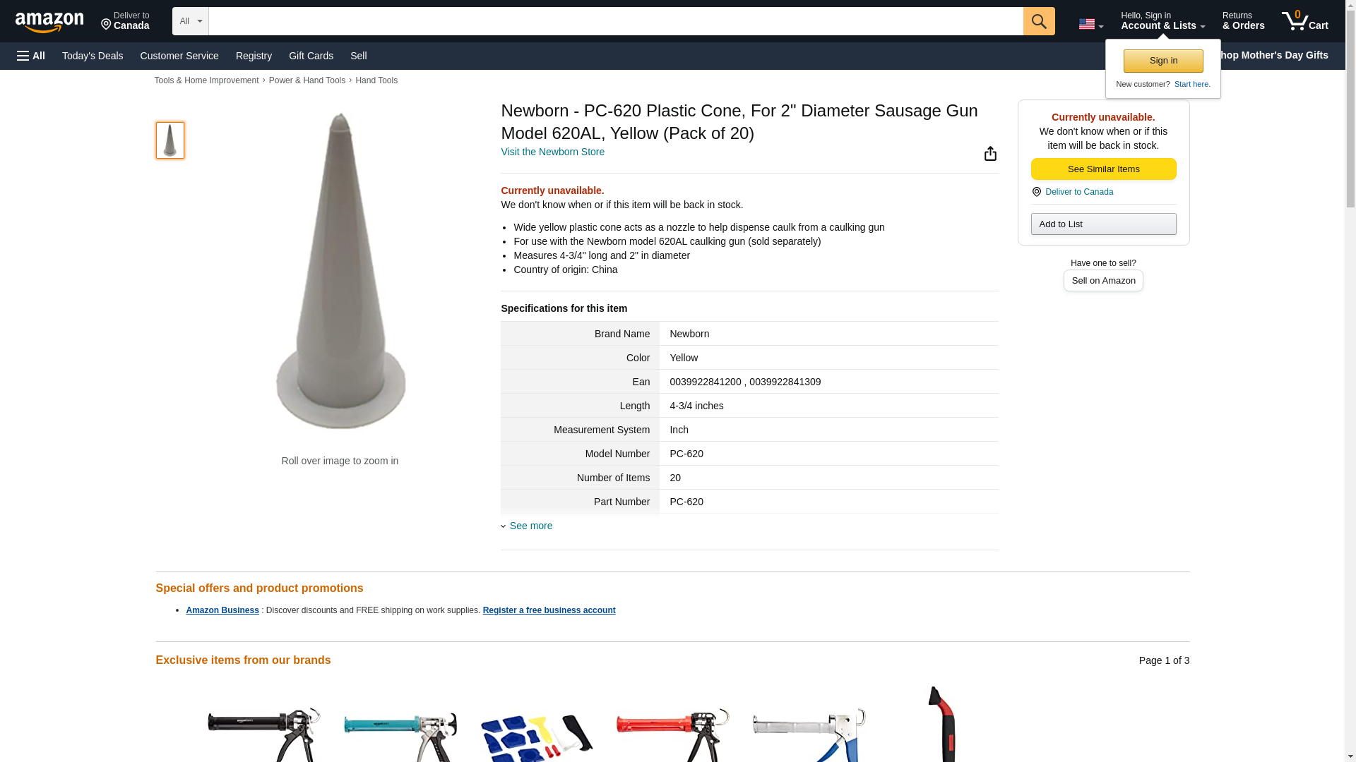 | Feature | Wide yellow plastic cone acts as a nozzle to help dispense caulk from a caulking gun |