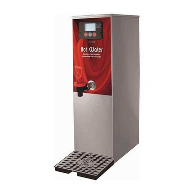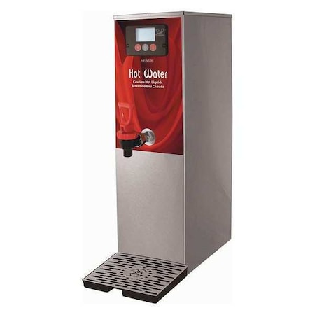 The Hot Water Machine dispenses piping hot water, drawn from a faucet, which can be used to prepare any of the powdered or instant products available in today’s marketplace. It’s water temperature set point can be configured to a low value of 170 degrees Fahrenheit up to a high value of 205 degrees Fahrenheit depending on your needs and requirements. It has dual voltage which makes it convertible for 110 or 220 voltage applications for site flexibility and inventory management. This hot water dispenser also features: ~TVT Programming Technology Leading edge digital programming from Newco allows for easier set up and operational accuracy ~Large LCD Display Quick referencing of system settings for efficient operator management ~Self Monitoring 6 potential error modes and dual zone temperature readout indicate system status for convenience of operation and pre-service trouble shooting ~Advanced Temperature Control dual termisters (top and bottom) ensure consistent temperature draw throughout the tank ~Automatic Pre-Fill fills on initial hook up for convenience of install. Element is activated only when water level has reached the top probe ~Durability Stainless steel exterior and tank assembly ~Standard Drip Tray Large capacity drip tray with logoed stainless steel cover for durability and esthetic appeal ~Bold Caution Decal Bi-lingual “CAUTION VERY HOT WATER” decal reinforces operator safety and awareness ~Capacity 2 gallon Tank Warranty: Newco coffee brewers are warranted against defects in workmanship or materials, under normal use, for 90 days from the date of purchase. Brewer parts are warranted against defect for 12 months from date of purchase. Liability in all events is limited to the purchase price paid and liability under the aforesaid warranty is limited to replacing or repairing any part or parts which are defective in material or workmanshi