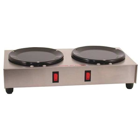 'Hot Plate, Watts 200, Element Type Solid, Number of Elements 2, Heating Elements 6 In. dia., Length (In.) 7, Width (In.) 14, Height (In.) 3-1/2, Voltage 120, Standards UL,NSF, Includes Separate On/Off Switches, Porcelain Enameled Black Warmer Plates'