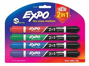 EXPO 1944655 Dry Erase 2-in-1 Markers, Chisel Tip, Assorted, 4-Count