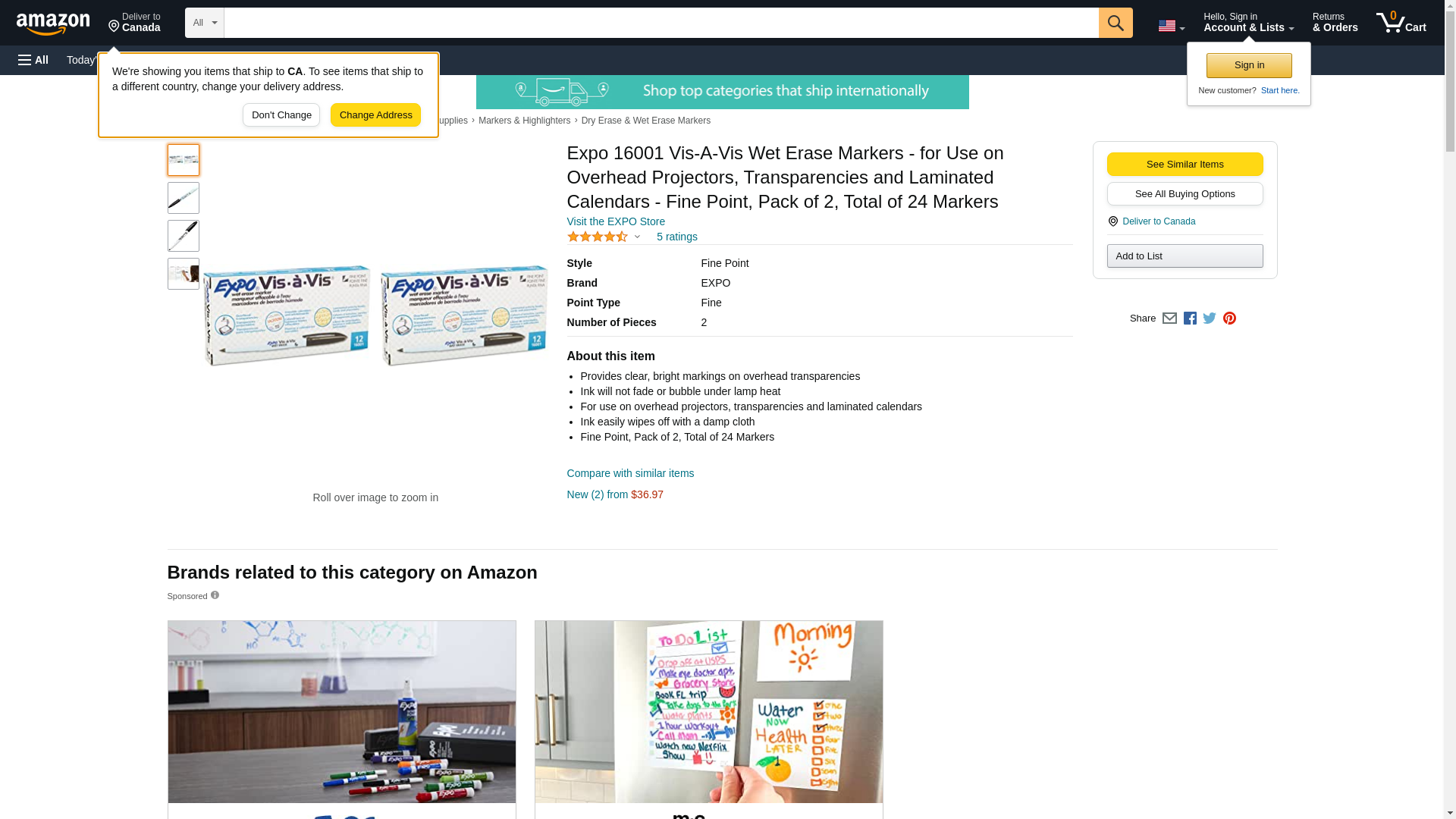 Expo 16001 Vis-A-Vis Wet Erase Markers - for Use on Overhead Projectors, Transparencies and Laminated Calendars - Fine Point, Pack of 2, Total of 24 Markers