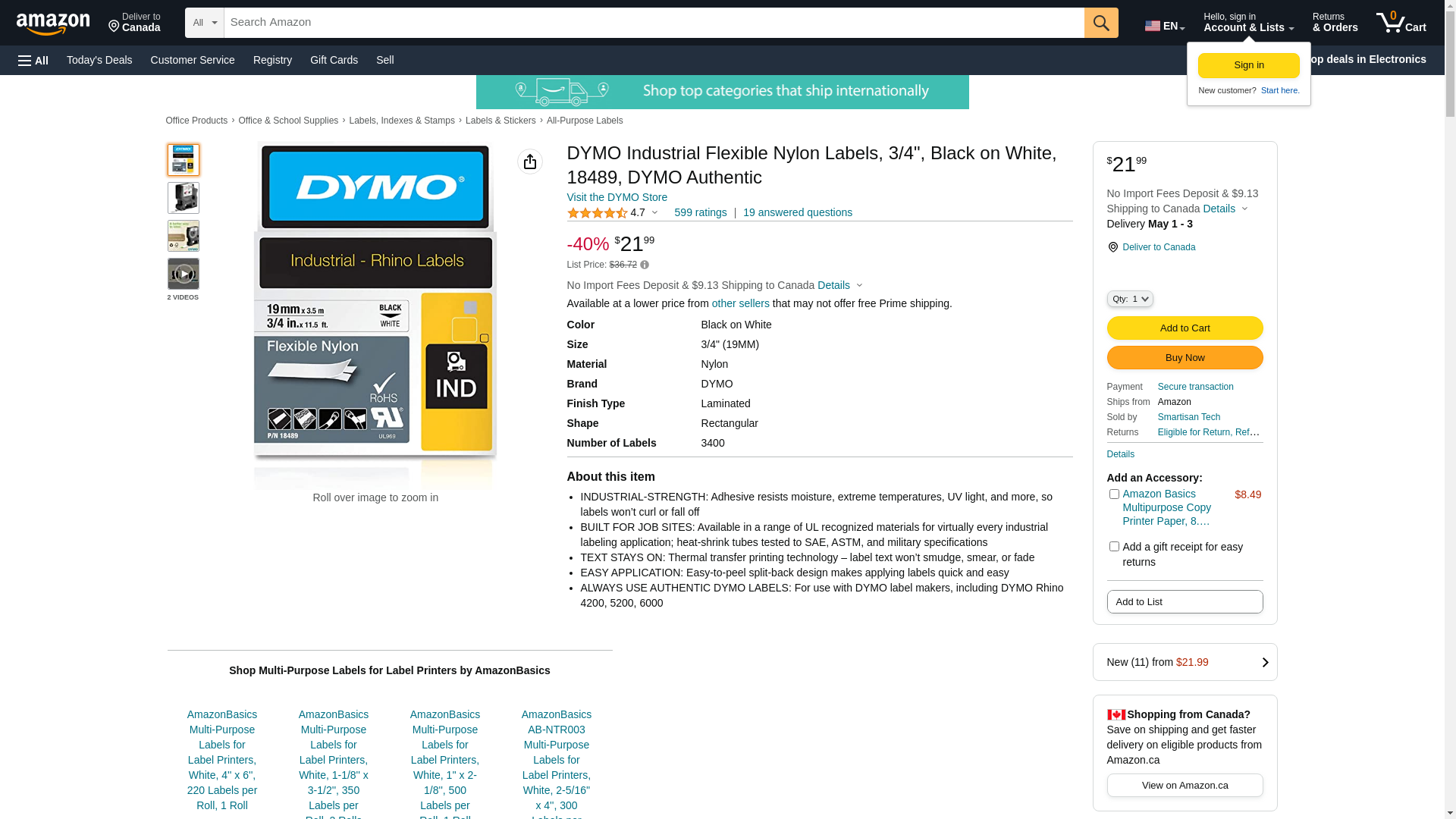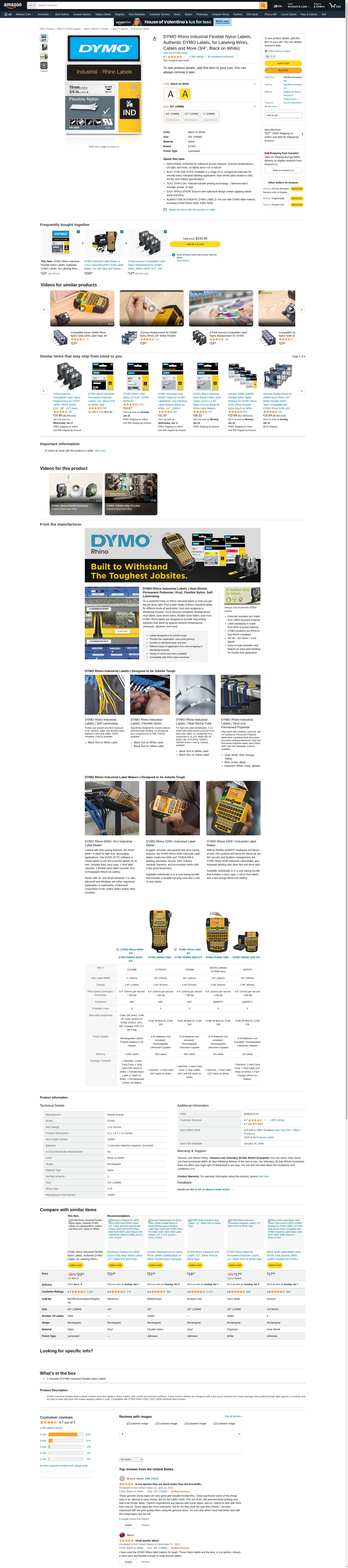 DYMO Industrial Flexible Nylon Labels, 3/4", Black on White, 18489, DYMO Authentic