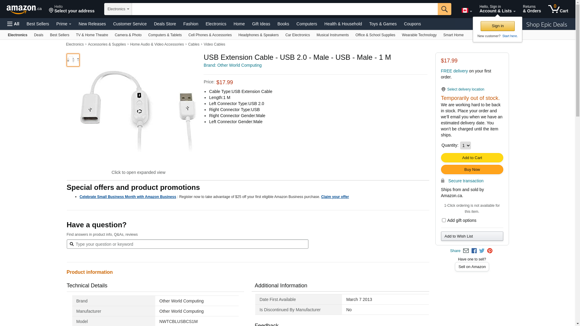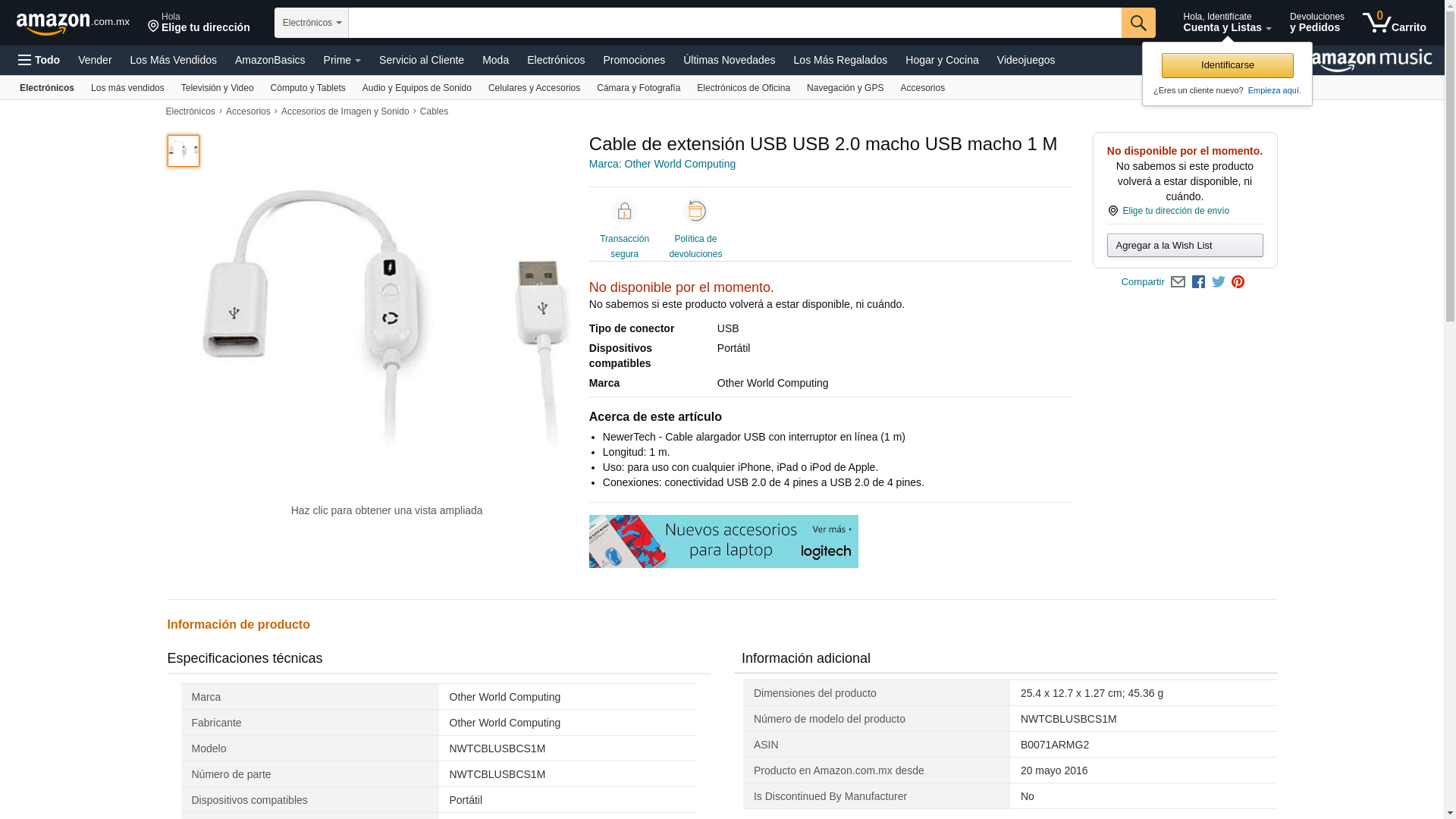 | Feature | NewerTech 1m USB Extension Cable with In-Line Switch - NewerTech 1 Year Limited Warranty |
