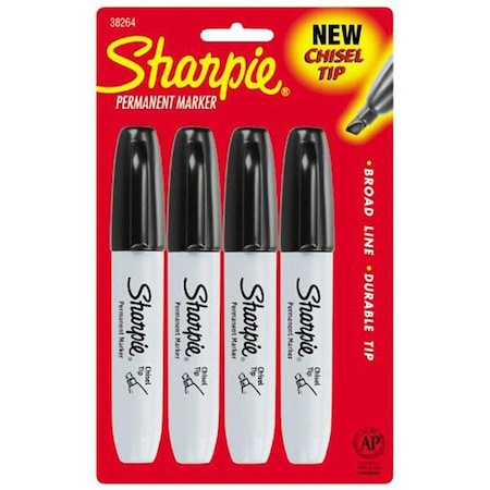 The versatile Sharpie Chisel Tip Permanent Markers make a bold statement with the choice of both broad and fine line widths. The unique anti-roll body design provides added control and its ink is permanent on most surfaces. Sharpie Chisel Tip Permanent Markers:. Quick drying. Waterproof. Smear proof. Fade resistant. Anti-roll design. Durable tip. Produces broad and fine line. 4 per pack. Color: Black. Chisel point tip.