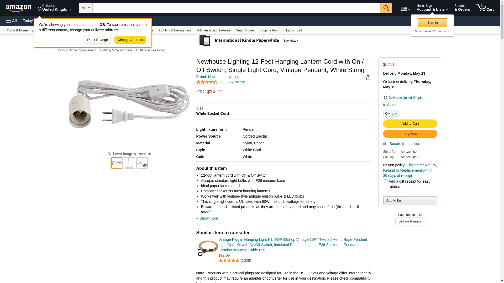 - This single light cord is UL listed with 60W max bulb wattage for safety