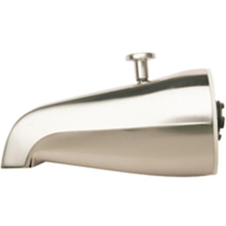 Features. Spout for in-the-wall showers. Lift lever diverts water to shower. Returns water flow to tub when water is turned off. Connects to 0.75 in. Ips at wall end with reducer bushing for ips pipe.. Bathtub spouts. With shower diverter. Finish - brass nickel. Dimension - 16.9 x 8.86 x 14.57. Item weight - 0.73 lbs.