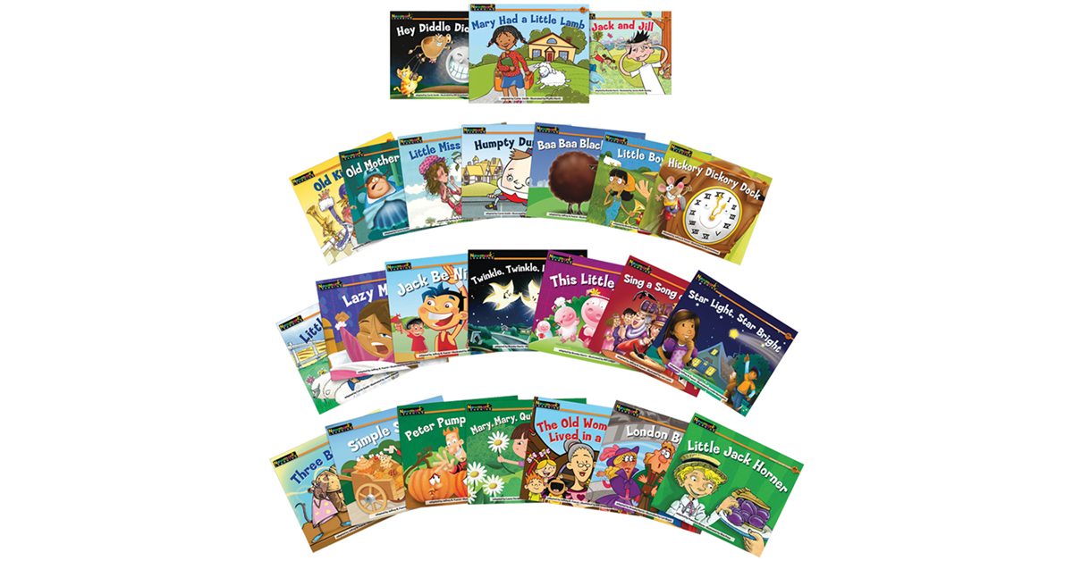 Based on classic nursery rhymes, these engaging stories are just right for beginning readers! Expertly leveled books integrate literacy instruction with engaging traditional tales and gorgeous illustrations. BONUS comprehension skills and sight word activities included in every book. (1 copy of each book; total of 24 books).