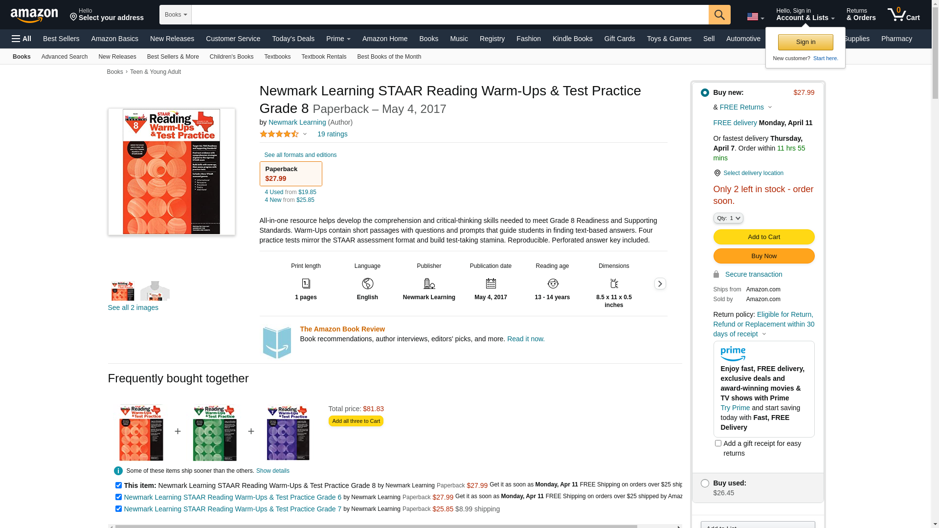 Newmark Learning NL-2335 Staar Read Warm Ups Test Practice Grade 8
